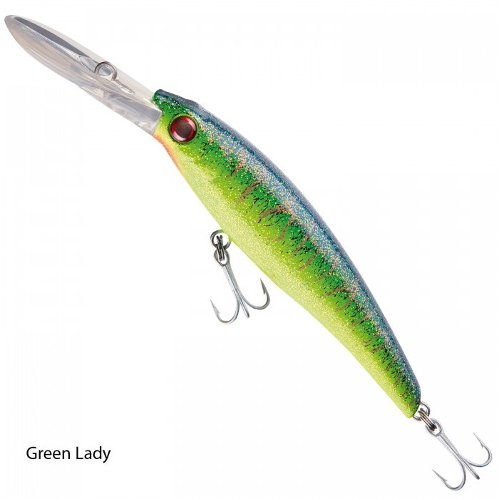 The ultimate trolling lure for all big predators in seas and big lakes. The crystal clear diving lip made of super strong polycarbonate provides a fast diving and ensures a unagitated but active swimming action. The body is manufactured from a special, very wear resistant plastic which resists the teeth of big predators. The strong and uncompromising perma steel treble hooks perfectly fit with this big trolling plug.