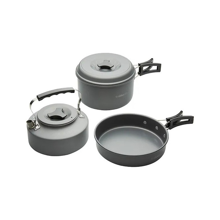 Including a frying pan, saucepan with lid and kettle, the Armolife Complete Cookware Set is perfect for life on the bank, allowing you to cook a variety of dishes on the bank without worrying about taking up much space. With foldaway, heatproof handles, the kettle neatly fits inside the saucepan with the frying pan covering the top, fitting snugly into the mesh bag supplied, keeping together for compact storage. The complete set weighs a light 651g and has been manufactured from lightweight aluminium and has been anodised to give its sleek grey colour.