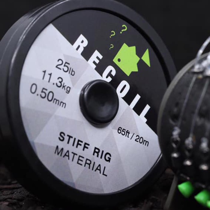 An ultra-compliant and user-friendly high memory stiff rig material for the construction of stiff hinge and chod rigs. Recoil works with blood, grinner and figure eight loop knots and can also be used with appropriately sized crimps.