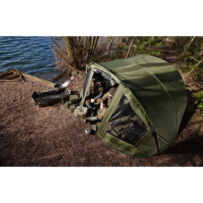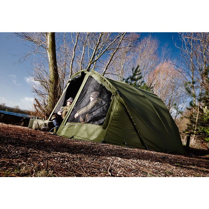 The Colossus is the gentle giant of the Trakker range. With enough space inside for three bedchairs, plus a large porch area, this bivvy answers the prayers of anglers who fish long sessions or just like loads of space. The space is not just in the headroom; the footprint of this mammoth bivvy has to be seen to be believed! Thick-gauge aluminium poles ensure that this bivvy stays rock-steady even in the worst weather conditions.