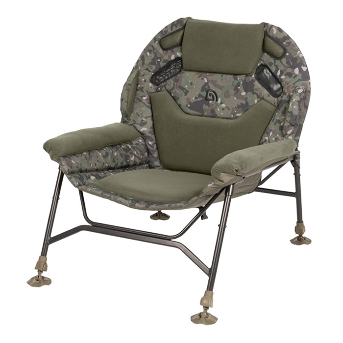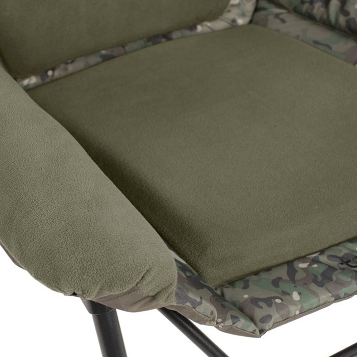 For added luxury, the chair features plush fleece-covered armrests, enhancing comfort even further. Velcro fixings allow for compatibility with a bedchair storage pouch (sold separately), adding extra convenience. Finished in Trakker’s bespoke camo pattern, this chair not only performs exceptionally but also looks the part on the bank.