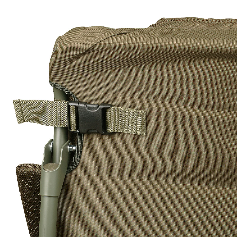 Trakker Levelite chair is incredibly compact, strong and lightweight. To assist in keeping the frame of the chair secured when folded, Trakker have added adjustable clips to create a tension and therefore a smaller compact size. The chair measures L80cm x W60cm when closed which makes all the different when packing up a carp barrow. Additionally, there are two eyelets on the back of the chair for an optional shoulder strap to make carrying again, even easier.
