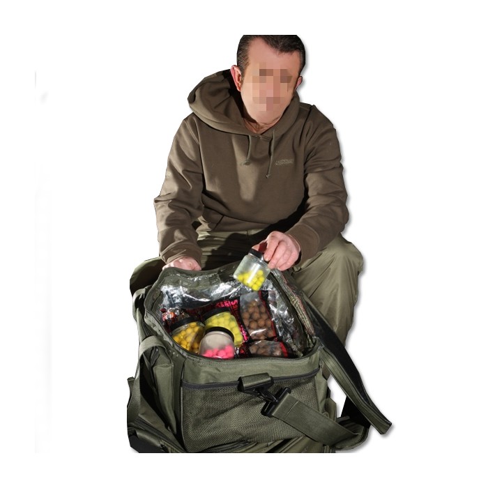 The Trakker NXG Chilla Bag stays cool by way of a stay fresh internal reflective lining. Spills are wiped off from the removable easy-clean PVC inner casing and there is extra room for additional items provided by a zipped front pocket and netted side pockets. The main compartment of Trakker NXG Chilla Bag is accessed by a twin directional zip and there is an adjustable shoulder strap and neoprene carry handles.