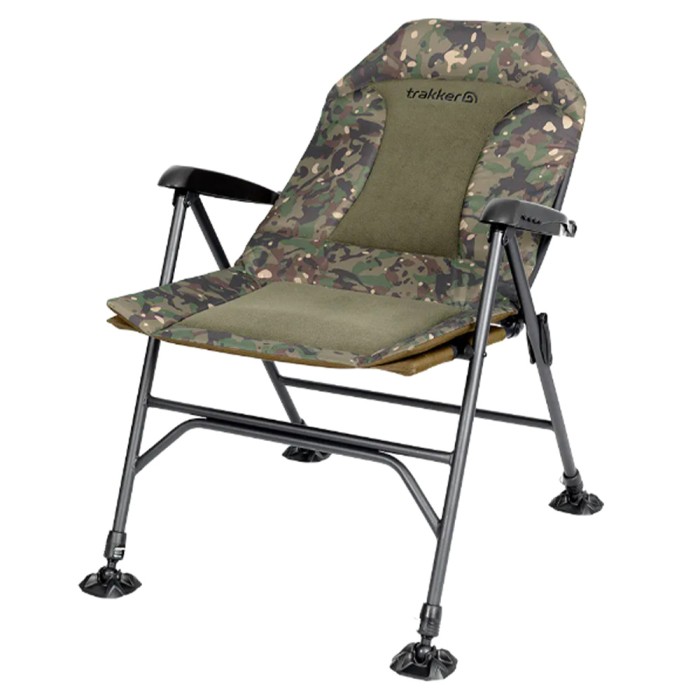 Trakker RLX Recliner Tall, Relax to the max during your angling sessions with our RLX Recliner Tall, engineered for lasting comfort and style. The latest generation of RLX beds and chairs features the most sumptuous padding, support in the areas you need it most and adjustability for optimal set-up in any angling situation you are likely to encounter. Finished in our bespoke camo pattern, not only will you be super comfortable in this carp fishing chair, but you will look good too!
