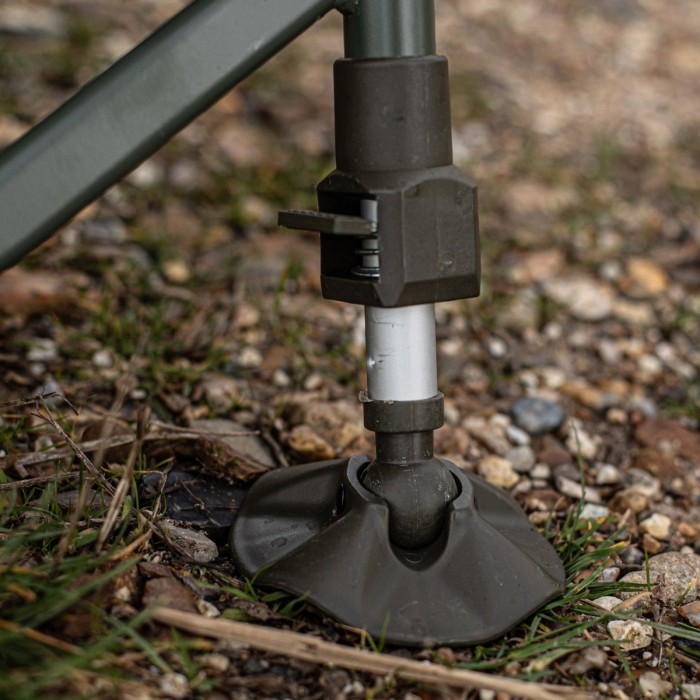 There are six height-adjustable options on the legs to ensure a comfortable level for not only the angler but the correct level for the fish. Heavier fish will make the cradle material meet the ground and so boosting the frame will help protect the fish more. There are also rotating mud feet on the legs of the frame to keep the cradle level on uneven bankside terrain.