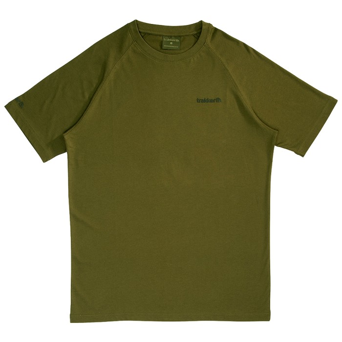 Trakker Tempest Fishing T-Shirt. Make your outdoor clothing choices with performance and comfort in mind. This natural cotton t-shirt allows your body to breathe, meaning you'll stay cool in summer and warm in winter. The raglan fit sleeve moves with you, perfect for layering up when the temperature drops.