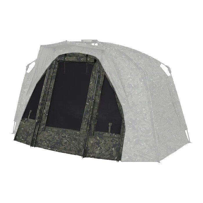 Designed to transform your Tempest RS Brolly Camo into a fully fronted shelter to offer even greater protection against the elements in adverse weather conditions. The Tempest RS Brolly Infill Panel Camo simply zips into the front in seconds and features dual-zipped doors, allowing you to create a letter box opening in addition to the conventional door style. The vents on either side of the door feature adaptive ventilation for maximum airflow around your shelter. This Trakker Infill Panel can be easily packed away thanks to its lightweight and compact design.