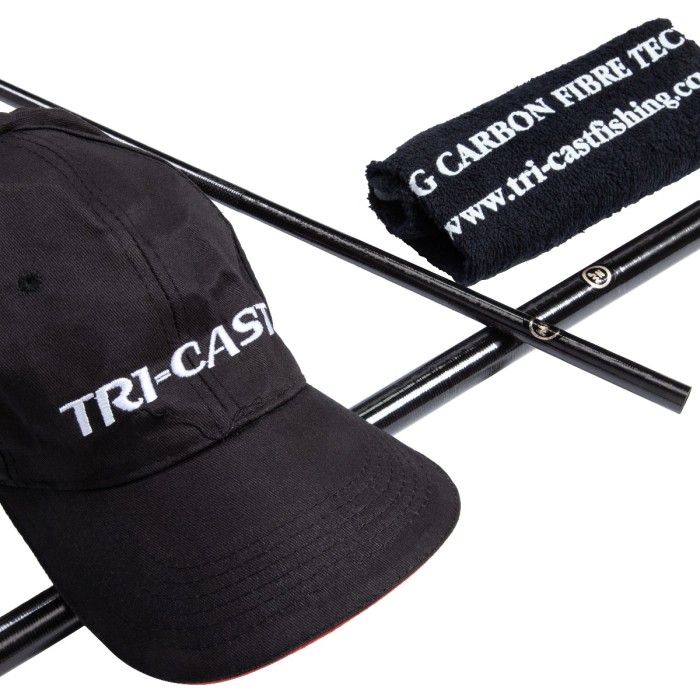 The pole as standard comes at 9m with a spare power top 2 kit. Plus its own holdall, Cap and Towel.