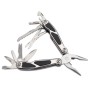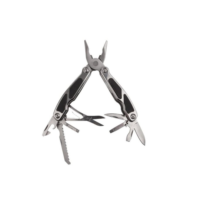 This stainless steel multi tool is of the highest quality giving you over 16 tools, not to mention a bright white LED light to shine on whatever you're working on. All weatherproof, rubber handle for comfort and strong grip, durable hard-wearing tools for the toughest jobs all this and more in our strongest multi tool ever. Specification: - Needle nosed pliers & wire cutters - Screwdriver - Bradawl - Bottle opener & flat head screw driver - File & wire stripper - LED torch - Scissors - 12 bit driver set and adapter - Fish hook remover - Can opener - Fine edge knife & serrated edge knife - Canvas belt pouch included Product Size: L100 x W44 x D23mm (Closed) Includes canvas belt pouch On/off LED light shines on task ast hand All tools accessible without opening pliers Colour: Silver and Black Size: L100 x W44 x D23mm Weight: 402 gram Other Info: Batteries included