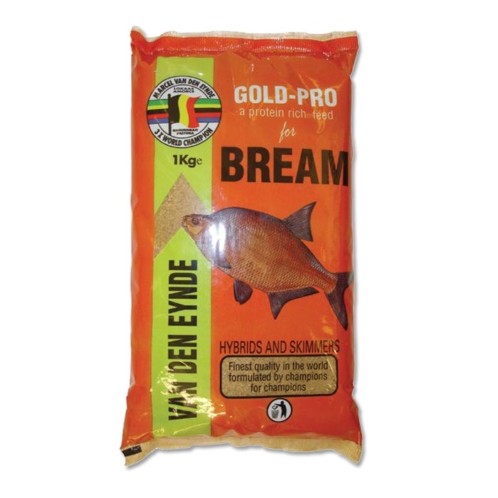 Ideal for use in any water where there are bream, (whether the bream are big or small), the Gold-Pro bream groundbait from Van Den Eyde offers specialist anglers the perfect base mix thanks to the baits medium texture and rich ingredients. It's one of the more aromatic of the Van den Eynde range with a sweet smell reminiscent of Brasem additive.