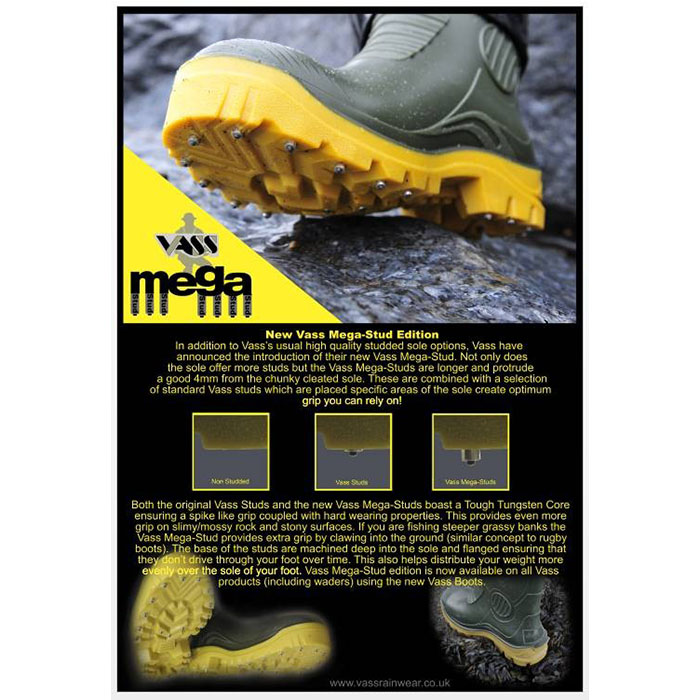 Made to last, designed to impress, and styled to suit any angler and every venue, these Vass waders make quality affordable, and offer an easy way to enhance your angling lifestyle. Studded soles offer extra grip, giving you the edge across a range of venues.