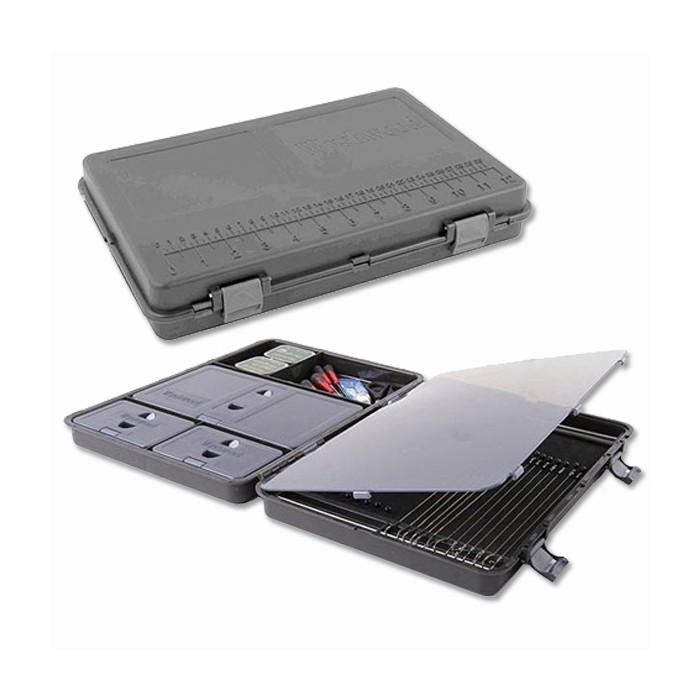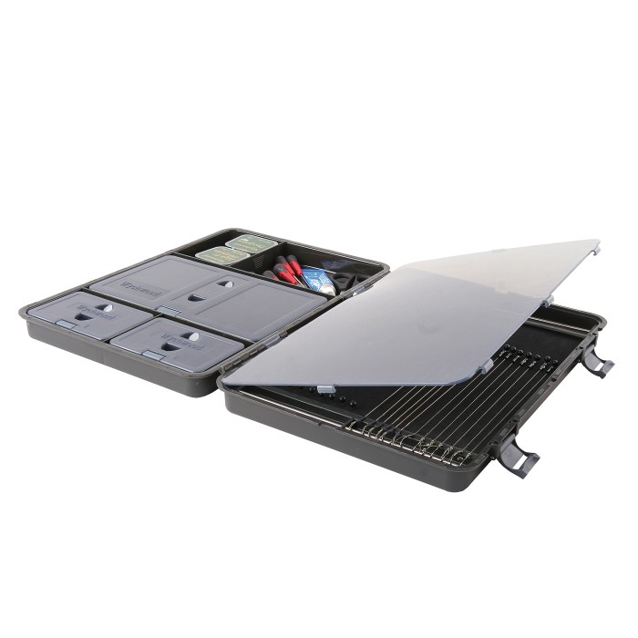 It is divided into two sections, one for tackle and components, and the other for storing ready tied rigs.