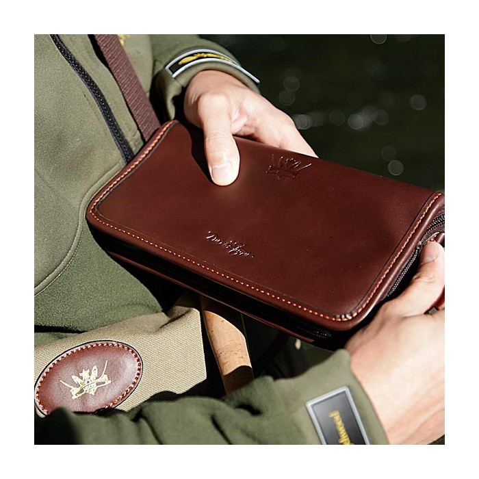 A blend of fine leathers, heavy-duty, double-laminate waterproof canvas and real wools are combined to offer the angler a much more traditional alternative to modern day fly storage systems.