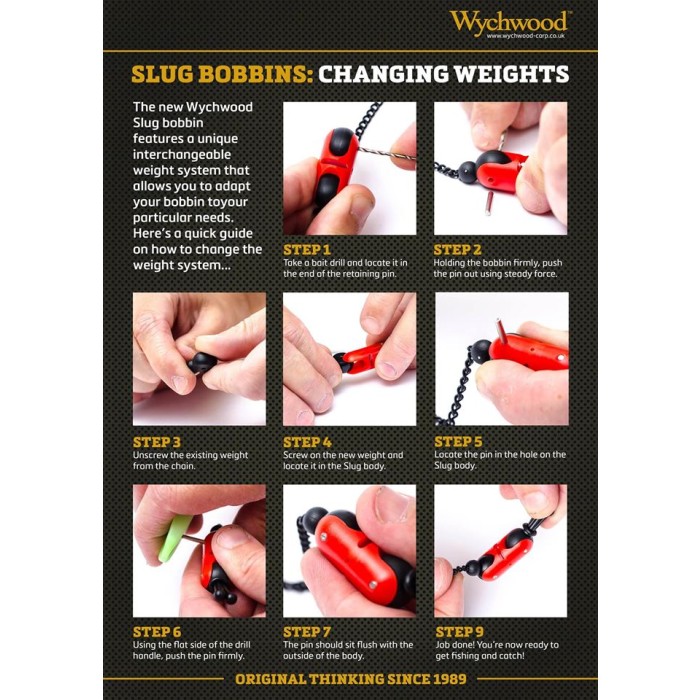 Our Slug bobbins are designed to be adapted to suit the angler's needs through a unique adjustable weight system. The SLUG's unique two-point pivot system opens up a whole new world of visual sensitivity, allowing even the slightest of line movement to be detected.